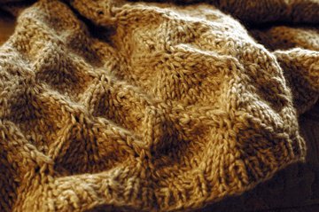 I really like the raised diamonds pattern in this afghan. I see in some earlier posts there were questions about the pattern but as far as I can tell it seems right - all the decreases are balanced by increases. Also, the border is in rib stitch, not seed stitch.