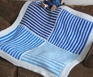 The Blue Skies Baby Blanket is a charming knit blanket pattern in which you'll love wrapping baby. This simple garter stitch pattern is perfect for beginning knitters, but the design is a classic that any knitter would enjoy making. This precious blanket has a nautical striped square design and a thick white border. Although it's shown in shades of blue, the Blue Skies Baby Blanket would be adorable in light pinks or yellows for your own bundle of joy.