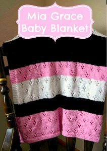 This adorable knit baby blanket pattern is the perfect cover in which to swaddle your tiny little princess. The Mia Grace Baby Blanket has a beautiful eyelet lace design in a girly pink, white, and black color scheme. This precious blanket makes a welcome addition to any nursery. It would look great hanging over the rocking chair or folded over the side of the crib. No matter where you display the Mia Grace Baby Blanket, this soft and cozy blanket is sure to lull baby to sleep instantly.