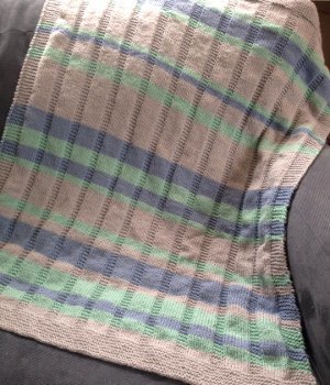 This is such a simple blanket to make but it doesn't look simple at all! I like how the stitch pattern stripes contrast with the yarn color stripes. It could be done in soft yellows or blue and green well, any color but those two combinations sound good to me! Off to check out my yarn stash...