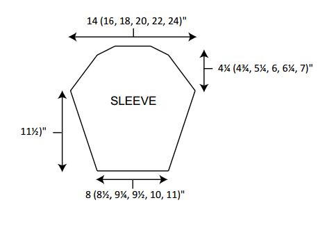 Next Row (right side): Begin shaping sleeve by inc 1 st each side this row, then every other row 0 (0, 4, 11, 16, 20) times, then every fourth row 8 (18, 17, 14, 13, 12) times, then every sixth row 6 (0, 0, 0, 0, 0) times–70 (80, 90, 100, 110, 120) sts. Work even until sleeve measures 9 (9½, 10, 10½, 11, 11½)” from beginning, ending with a wrong side row.