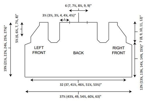 Directions are for size X-Small. Changes for sizes Small, Medium, Large, X-Large and XX-Large are in parentheses.