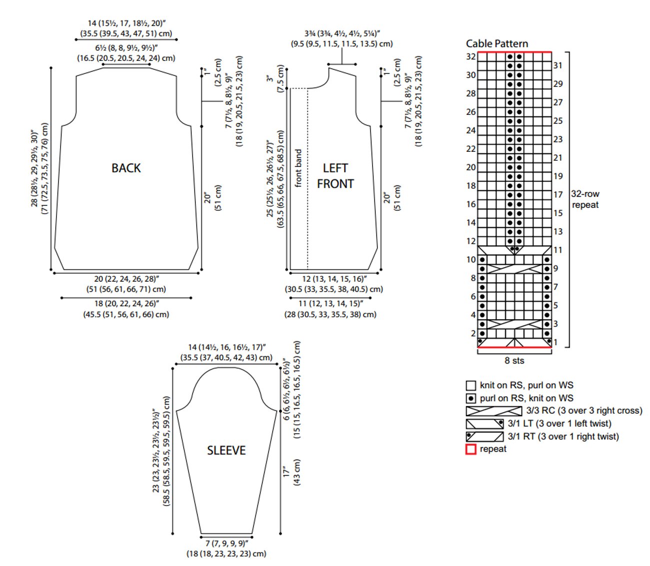 Repeat Rows 1–32 for Cable pattern.