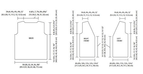 Finished Bust/Chest Measurement: 36 (40, 44, 48, 52, 56)" [91.5 (101.5, 112, 122, 132, 142) cm]