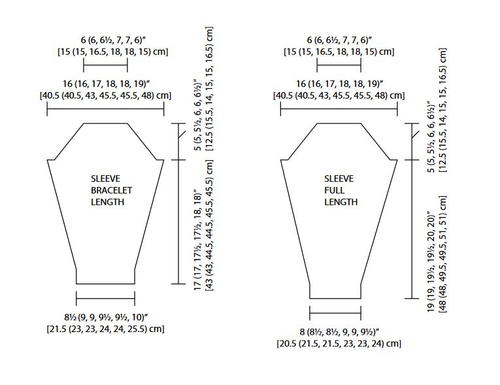 Work until sleeve measures 17 (17, 17½, 17½, 18, 18)" [43 (43, 44.5, 44.5, 45.5, 45.5) cm] from beginning, ending after a wrong side row.