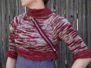 Hold onto your needles, knitters, this rock-and-roll Cherry Bomb Jacket needs to be tamed! Knit from the top down with a raglan sleeve, this knit jacket pattern is made with vibrant reds and a saucy asymmetrical zipper. If you've been searching for a cool jacket pattern with a little bit of pizazz, look no further than this eccentric piece.