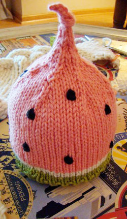 Your little one will look sweet in this Watermelon Hat. This easy knitting pattern is a great lazy day afternoon project.