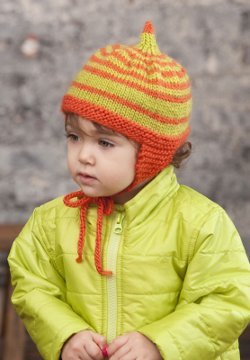 Fold Hat in half widthwise, with beginning of rnd at fold line. Mark center of each side of Hat for center of Earflap. With RS facing, dpns and A, pick up and knit 5 sts on either side of one center marker–10 sts. Knit 5 rows.