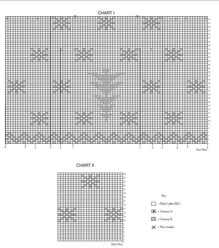 Sizes 3, 4, 5 and 6 only: When Chart I is complete work 25 sts of Chart II to end of chart, between markers placed at end of Chart I.