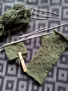Link hands with someone special while wearing the Chain Link Fingerless Mitts. This simple, yet attractive fingerless mittens pattern has a classic, interlocking rib stitch design. The Chain Link Fingerless Mitts are shown in a beautiful mossy green color, yet any other yarn for a size three millimeter double pointed knitting needle works just as well. Link up with a knitting friend and make these classic mitts today.