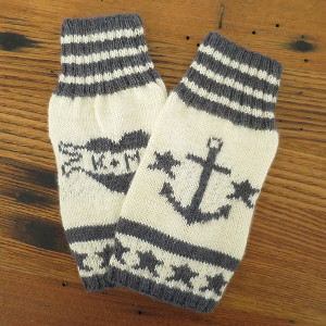 Get nautical with these Hello Sailor Handwarmers! This knit hand warmer pattern will keep your hands warm and toasty. When you're out near the water, there's always a damp chill in the air. Make sure that your hands stay cozy with these adorable hand warmers. Navigate the waters of advanced knitting with size 0 needles and super soft lace yarn. Sail through these fun designs inspired by classic Navy tattoos. Anchor down and get started working on this sea-faring pattern.