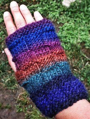 Watch the colors of the sunset unfold as you knit up a pair of your own Deep Night Fingerless Gloves. Great texture and bold color ways combine to create a pair of basket weave stitch gloves that don't require double pointed needles. Ideal for a cool autumn day, you won't regret knitting fingerless gloves that are this stylish and downright fun to make!