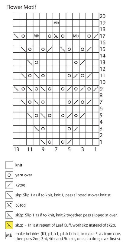 2. Leaf Cuff pattern can be worked from chart or from written instructions below.