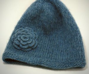 This is a very simple hat, although pretty, so it should be easy to make. The flower, however, is crocheted, so if you don't crochet, you'll have to come up with something else. I searched for knitted flowers on this site and there are several that would work, maybe the easiest one here http//www.allfreeknitting.com/Knit-Accessories/How == -to-Knit-a-Flower
