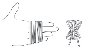 Pompom: Wrap A, B, C and D around 4 fingers 30 times. Remove from fingers and tie tightly in center. Cut through each side of loops. Trim to a smooth round shape. Sew securely to top of Hat.
