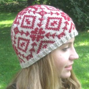 Fall in love with the Cupid's Bow Beanie. This beautiful knit hat pattern is a gorgeous example of how stylish fair isle knitting can be - even after the holidays! Although the designer of this pattern modeled the stitch work after stained glass windows, we think the motif looks more like a bow and arrow. We love the Cupid's Bow Beanie in red and white (especially for Valentine's Day), but it would look amazing in any other colors as well.