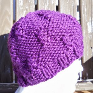 This pretty plum hat is a nubby textured gem. The Purple Mountains Majesty Hat is thick, warm, and soft enough to cradle the most delicate heads. This knit hat has a lovely stitch design that creates a wonderfully bumpy, interesting texture. The Purple Mountains Majesty Hat is a quick knitting project and an easy way to jazz up an outfit. It offers both a pop of bright color and a fun look and feel.