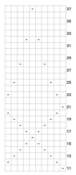 Note: At this point, you should notice that the columns of centered double decreasing line up with the peaks of the purl motif.