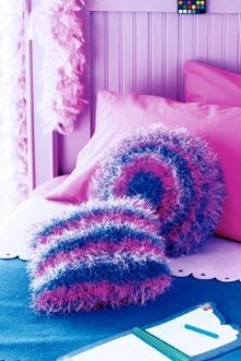 Energize any room in your house with fun, fluffy striped knitted pillows. Two easy knitting patterns help you to transform fuzzy yarn into fuzzy pillows. You won't be able to stop hugging these soft pillows! Choose yarn with alternating colors to match any room you think could use a little excitement. Test your double-point needle skills or learn how to use them today!