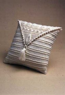 Want a challenging project to beautify your sitting area? This knit pillow with Aran triangle design is unique from most knitting patterns. Resembling an envelope, the Aran triangle features a tassel and leaf pattern. Why decorate with ordinary pillows when you can create this one-of-a-kind chef d'oeuvre!