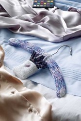Hang your favorite clothes on smooth hangers. Use this free knitting pattern to drape your tops, jeans, pants, and dresses. The sachet is an added bonus, so fill it with your favorite potpourri.