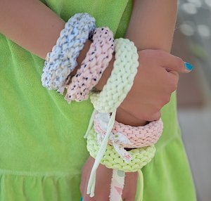 These are super easy to make but I wasn't keen on how bulky they were so I used a DK weight yarn and adjusted the number of stitches that I cast on to make it fit around my daughter's wrist. They would look really good made with sparkle yarn or you could add embellishments such as beads and buttons to make them unique. They are a great way of using up leftover yarns and would even look good in a mix of colours if you had lots of small yarn lengths leftover.