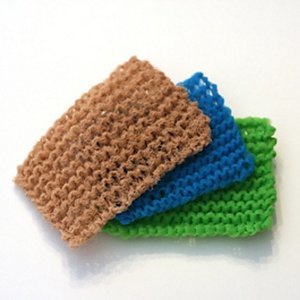 These useful little scrubbers are knit with tulle cut into 1 - 2" strips instead of yarn. What a clever idea. You can by tulle in 3" wide rolls 25 yards long or in other widths too at hobby and fabric stores and also at stores that sell party supplies. Watch for sales to buy the tulle cheaply or use the coupons found on most every fabric store site. The patter is simply a few rows of garter stitch but I imagine you could crochet them too.