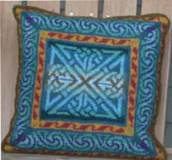 If you enjoy Fair Isle knitting than this beautiful Celtic Pillow is a must have. The colorful knitting pattern features a deep mitered border around a central square. Experiment with color and design to make your own unique knit pillow.
