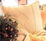 Use this free knitting pattern to create a classic Fisherman Pillow. The creamy-colored yarn and cable stitch pattern creates a beautiful result.
