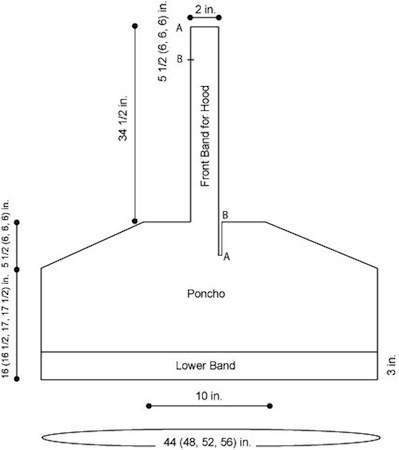 2. A cable pattern is worked on the Lower Band, Poncho, front band and hood. If desired, stitch markers can be used to highlight those sts.