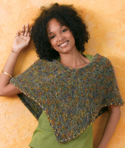 The feathery yarn used in this Embellished Poncho will enchant you. This is one of our best easy free knitting patterns.
