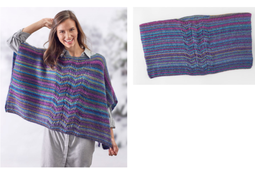 The Lace Panel Knit Poncho is a quick and easy way to spice up your wardrobe without much effort. This knit poncho is simply two rectangles with an easy, lace stitch center section for visual interest. Knitters of all skill levels will surely love working up this stylish and visually striking design from start to finish.