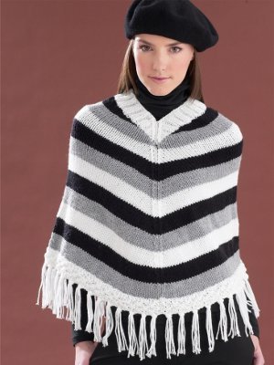 Step out in the Stylish Stripes Poncho. This sleek and chic knit poncho pattern is sure to satisfy your fashion craving while offering extreme comfort and warmth. With no sleeves and less shaping to deal with, knit poncho patterns are a relaxing and rewarding knit. The Stylish Stripes Poncho is perfect for a casual weekday outing or a mod weekend party. Treat your needles and your wardrobe to this versatile and tasteful knit.