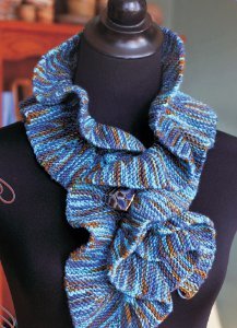 This blue beauty of a scarf is a gorgeous way to incorporate a little color and texture into your outfit. The Azure Ruffle Scarf is a beautiful knit scarf pattern full of bright blues and golden browns. This fun, ruffled scarf is a great option for an afternoon outside or a relaxed weekend indoors. Either way, the Azure Ruffle Scarf is sure to turn heads and get you tons of compliments.