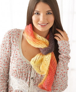 This simple knit scarf pattern is the perfect project for summer. Light enough to wear on a sunny day and warm enough to keep chills at bay, the Bonfire Lace Scarf is sure to become a summer staple in your closet. Combine lace and stockinette stitches to look graceful in this delicate knit pattern. All of the pretty details in this scarf make it a summer essential. Bring in the rich colors of a roaring bonfire to feel fun and carefree all summer long.