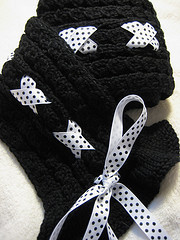 Add a new twist to a classic cable scarf. This Corset Laced Scarf is worked with different cables on each side so there is no obvious front or back. Choose a fun print ribbon to weave in and out of the cables on this unique scarf pattern.