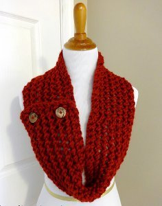 Looking for a quick and easy knitting project? The Cranberry Button Scarf is a great knitting pattern to make. This easy knit scarf pattern is a lace mesh scarf worked in an easy two row repeat. Easy to memorize and fun to make, the Cranberry Button Scarf is a charming cold weather accessory you'll love wearing. Grab a pair of needles and whip up this gorgeous neck accessory in no time!