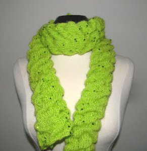 Looking for a knit scarf pattern with a little pizazz? The Gathered Sparkle Scarf is the neck accessory for you. This scarf has it all glittery sequins, a funky lime green color, and a fluffy texture that's sure to keep you cozy all season long. The Gathered Sparkle Scarf is a great pattern to learn how to gather as well as knit with sequins. With a little patience, you'll have a unique knit accessory that will keep you cozy all winter long.