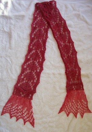 "Knitting Needle Size: 3 or 3.25 mm" and "Yarn Weight: (1) Super Fine (27-32 stitches to 4 inches)." However, any yarn that gives you the gauge will work, too. If you wanted to make this scarf in a DK or worsted weight, you would use a size 6-8 needle. Gauge is not as crucial in a scarf as it is a sweater (that needs to be fitted to your body dimensions) and that's a good thing!
