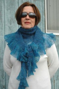 You know the way frost looks on your windows in the early morning light? It's almost as if someone took a handful of glitter and blew it along your windowsill. The Jack Frost Scarf captures the light and airy look of shimmery winter frost in a beautiful knit scarf pattern. This lovely blue scarf is a ruffled lace scarf that looks great worn as either a scarf or a shawl. The Jack Frost Scarf may require a little extra effort, but with a little patience, you can create an absolutely gorgeous neck accessory that can be worn year round.