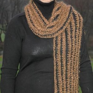 The Salted Caramel Scarf is the perfect winter neutral in a fun, vertically striped design. This knit scarf pattern is knit in a pretty black and brown color scheme reminiscent of a piece of gooey salted caramel. It's an easy project for novice knitters because the only stitches you need to know are the stocking and reverse stocking stitch. The Salted Caramel Scarf would look great with gold jewelry and a plain back shirt or sweater.
