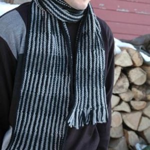 The Shaded Lines Scarf makes a great gift for the man in your life. This knit scarf pattern is an attractive mix of gray and black lines with a simple fringed edge. Although this pattern looks a little complicated, the Shaded Lines Scarf is actually an easy knitting pattern perfect for novice knitters. This handsome neutral-colored scarf will go well with any jacket or coat. This winter, keep your man warm in the Shaded Lines Scarf.