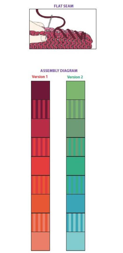 Sew squares together using a fl at seam as shown in Diagram, noting striped squares will be placed sideways.