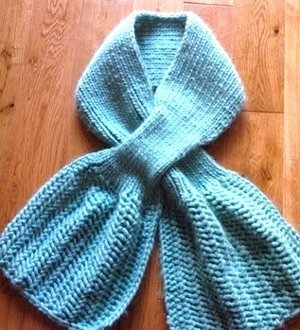This sweet knit scarf pattern is a charming knit accessory perfect for spring. The Simple Keyhole Scarf is a lovely shade of sky blue and features a simple opening for a scarf that lays flat against your outfit. This cute and cuddly knit scarf is an easy pattern that knits up pretty quickly, especially because of the bulky yarn and 10.5 size needles required for completion.
