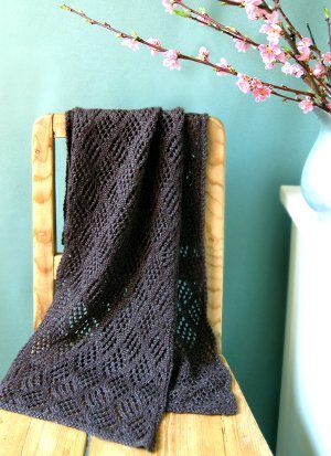 This is a lovely lacy, lightweight scarf pattern. It makes me think of spring or fall, when you want a light scarf for chilly days, not a heavy winter one. It would be pretty in a pastel color for spring or an earth tone like pumpkin, sage, or light brown for fall.