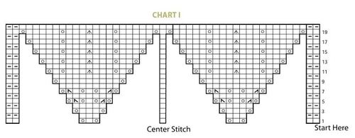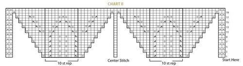 Rep 1st to 20th rows of Chart II 6 times more (noting reps between * to * will increase 2 reps on each side of center st every 20 rows). 327 sts. -