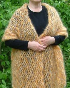 Wrap yourself up in this beautiful knit wrap pattern. The Cozy Mohair Wrap features a gorgeous zigzag lace trellis stitch and is a great pattern that will keep intermediate knitters interested. This warm winter wrap is perfect for relaxing on the couch with a good book and cup of piping hot tea. The Cozy Mohair Wrap looks great in the warm sand color shown in the picture, but it would look lovely in any other mohair yarn as well.