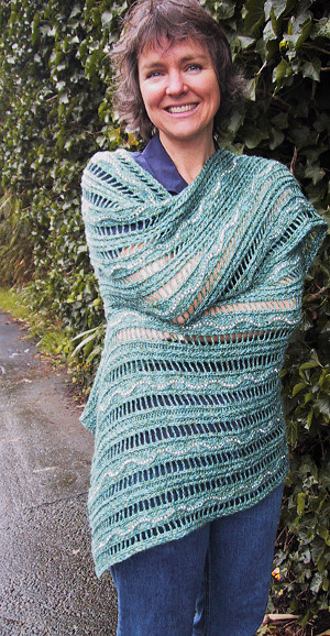 A great summer wrap for the beach or going for a stroll in the evening. The shawl would be a big project, though - it measures 80 inches by 20 inches and also has beads knitted along it's entire length! Definitely something to start in the heart of winter for it to be completed by summer!