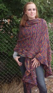 Shake your groove thing in the Funky Fall Wrap. This adorable knit wrap pattern is perfect for a crisp autumn day kicking leaves and strolling through the neighborhood. This wrap features a fun ruffled hem with a great vibrant scheme. The bold purples, oranges, and greens remind us of falling leaves. The pattern is one size fits all and is a great project for the intermediate knitter. What better way to celebrate autumn than by throwing on the Funky Fall Wrap?