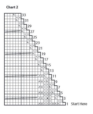 Cast on 5 sts. (See Chart 1 and key).